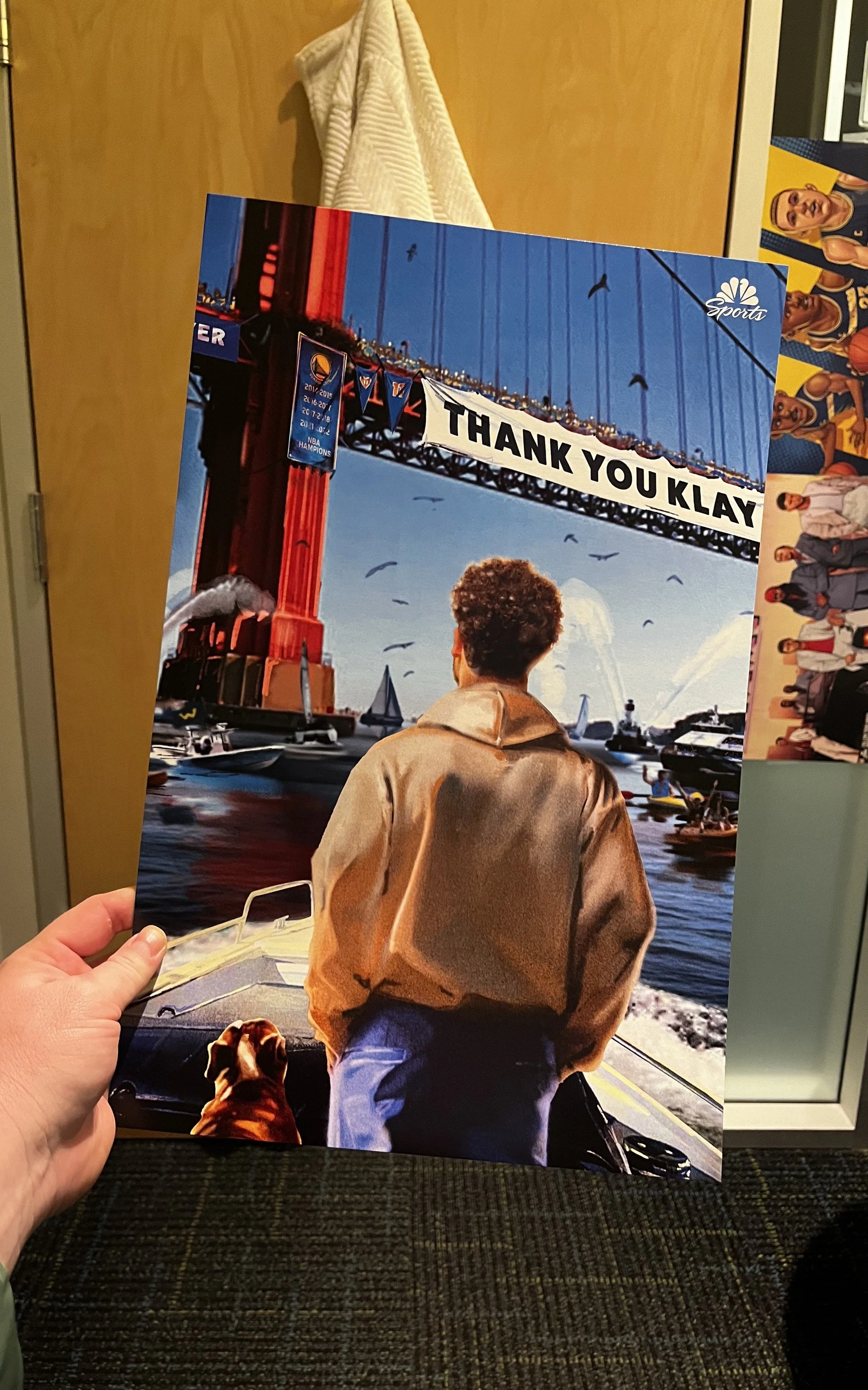 When Klay Thompson left for Dallas in 2024, I created an original illustration capturing the emotional response from fans—this graphic remains @NBCSAuthentic’s top-performing post to date. Upon his return, NBC Sports printed 11,000 of these illustrations as giveaway posters. His first game back in San Francisco later that year also featured two additional original illustrations and two custom video pieces that I created.